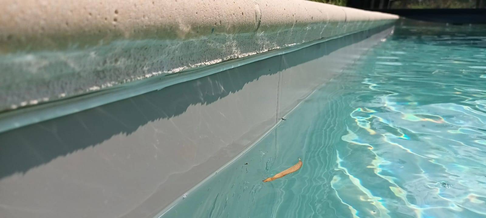 Avant de poser le nouveau liner, nos équipes ont procédé à une préparation minutieuse du bassin : vidange complète, remplacement du feutre de fond et traitement fongicide des parois. Les clients ayant souhaité apporter une touche de modernité supplémentaire, nous avons retiré la frise carrelée, un élément souvent désuet dans les piscines récentes.