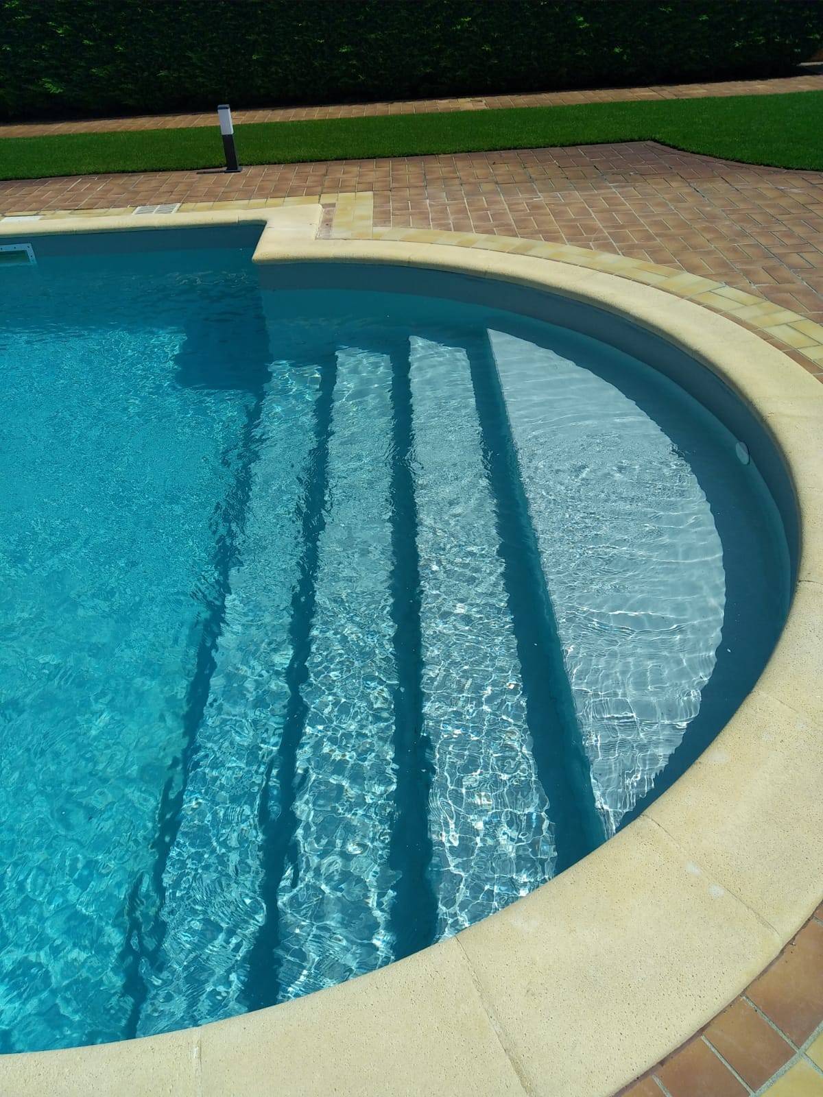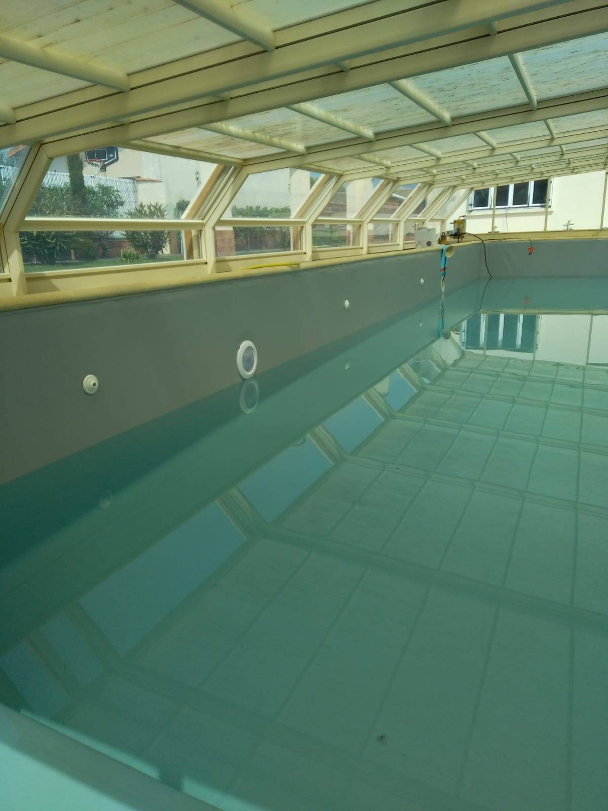 Les travaux ont consisté à la suppression du gel coat , c'est à dire par un ponçage total du bassin, puis nos équipes ont effectués un enduit afin de rattraper la hauteur du gel coat