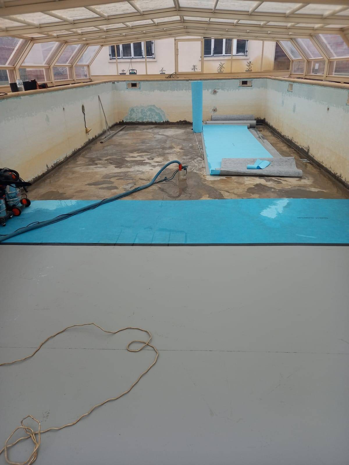 Nous avons ensuite posé le feutre de protection sur paroi et fond.