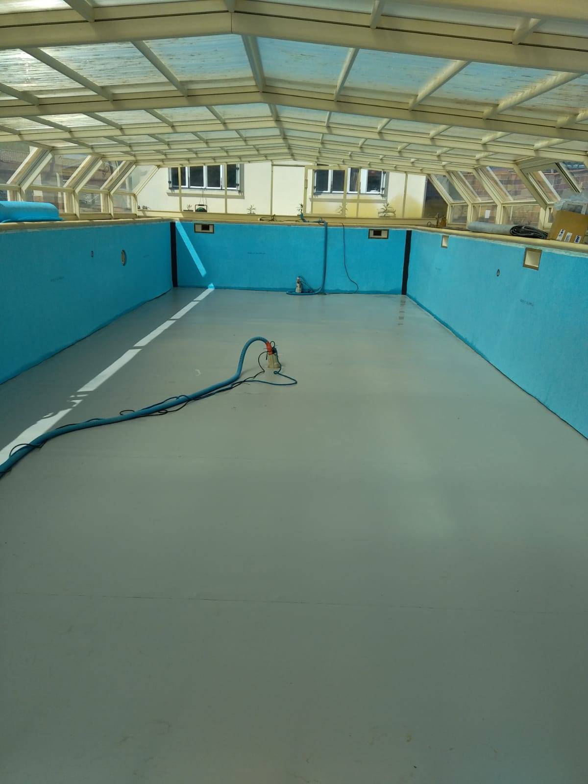 Le client à choisit un revêtement en PVC Armé 150/100 ème de coloris gris clairque nous avons soudé en bord à bord pour plus d'esthétisme.